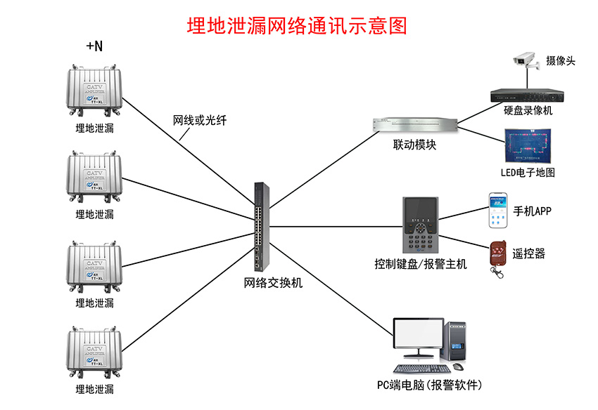 埋地泄漏入侵報警系統示意圖——網絡通訊+LED電子屏+語音