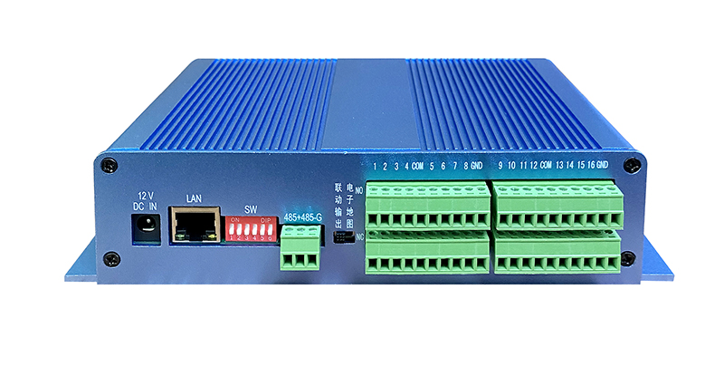 16路聯動設備 通訊方式:RS485/網絡 設備尺寸:240*121*49mm 設備供電:DC12V 設備功率:4W 端口說明: NC: 常閉開關量信號端口,用于接常閉型報警輸入設備的一端。
