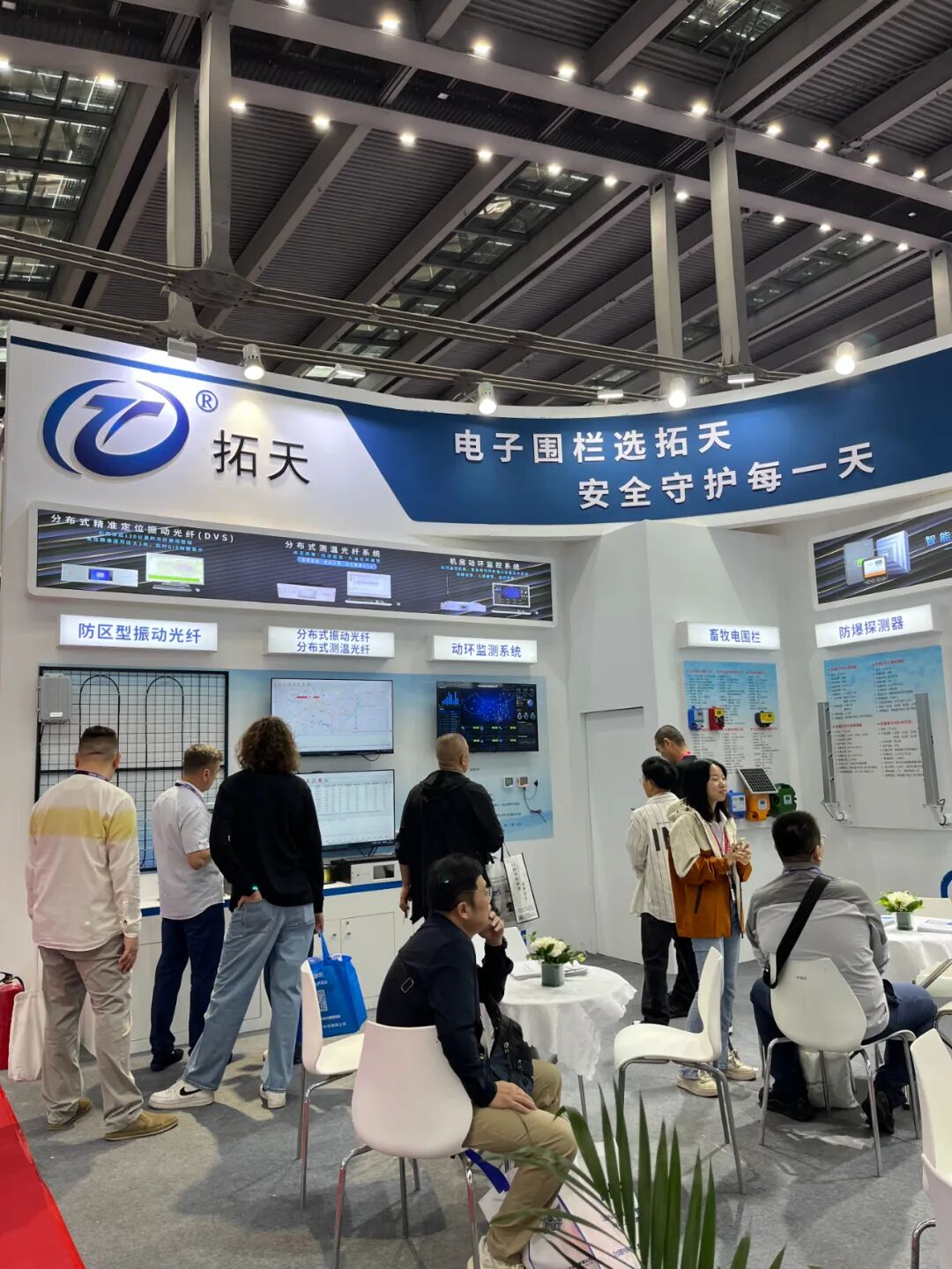 深圳安博會開展首日,現場人氣爆棚。本屆展會匯聚了全球1100多家企業,預計將吸引約15萬人次專業買家。在熙攘的人群中,東莞拓天的展臺前圍滿了對周界防范產品表現出濃厚興趣的參觀者。