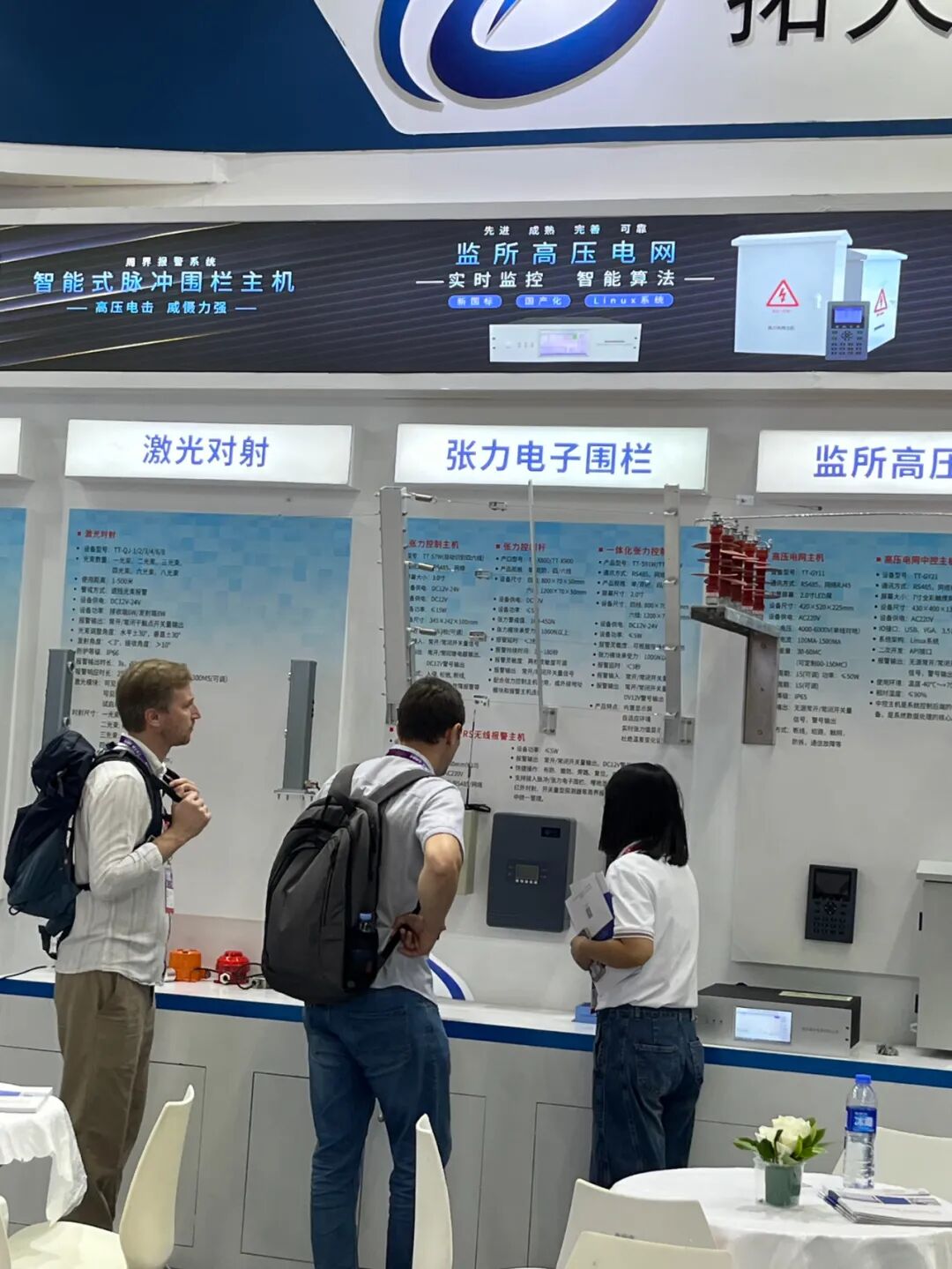 我們的現場服務人員始終以最飽滿的姿態、全方位講解脈沖電子圍欄、張力電子圍欄、激光對射、高壓電網、動環系統、振動光纖系統等核心產品技術要點與演示各類報警機制!