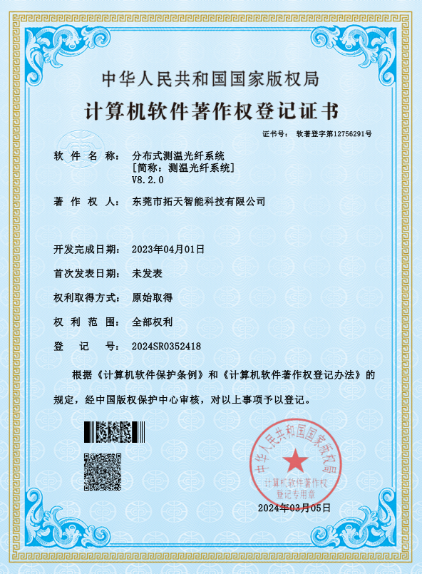 分布式測溫光纖系統國家版權局計算機軟件著作